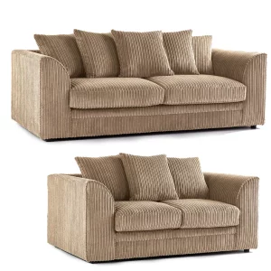 Jumbo Cord Fabric 4 Seater Corner Sofa – Scatter Cushions – Coffee