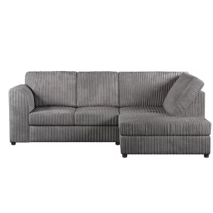 Jumbo Cord Fabric Corner Sofa with Full Back Cushions – Grey – Left/Right