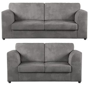 Jumbo Cord Fabric Corner Sofa with Full Back Cushions – Grey