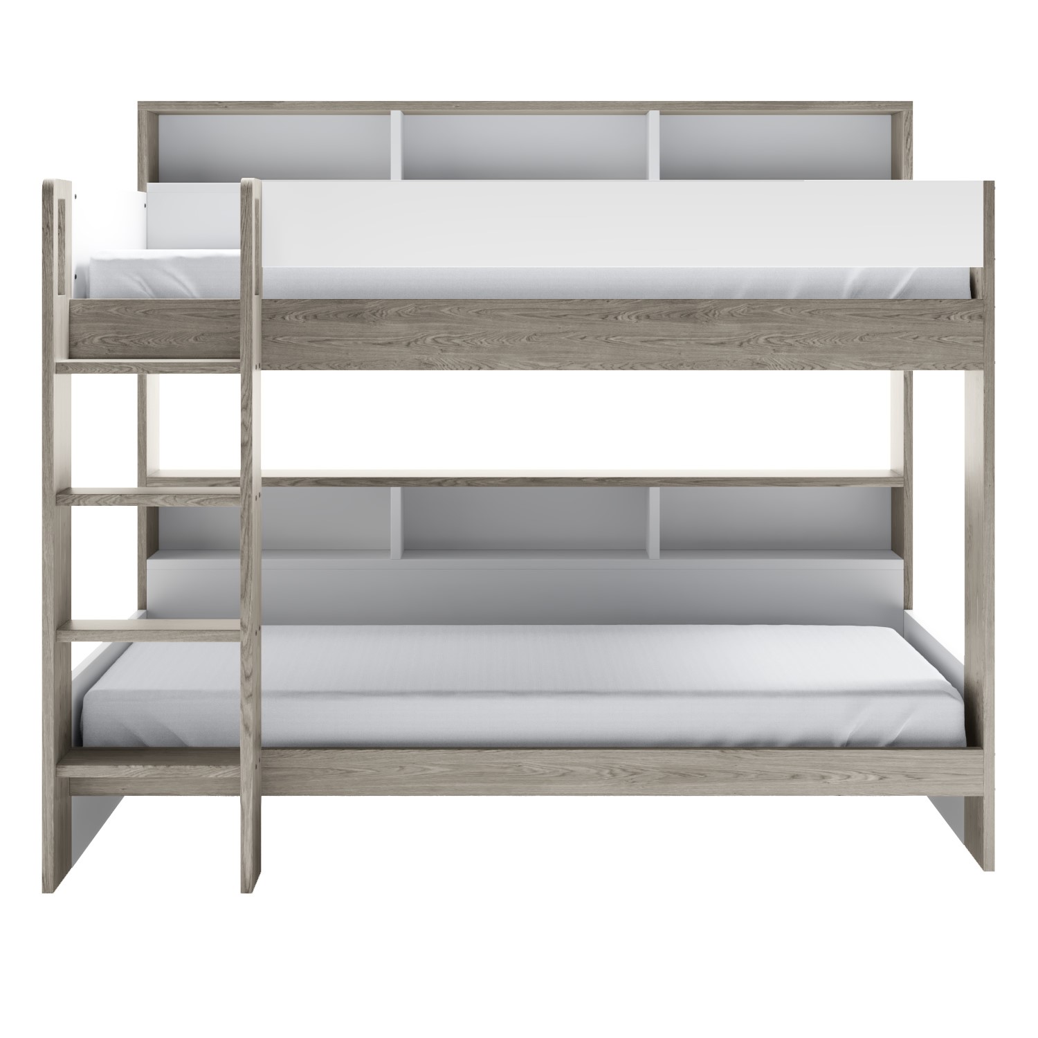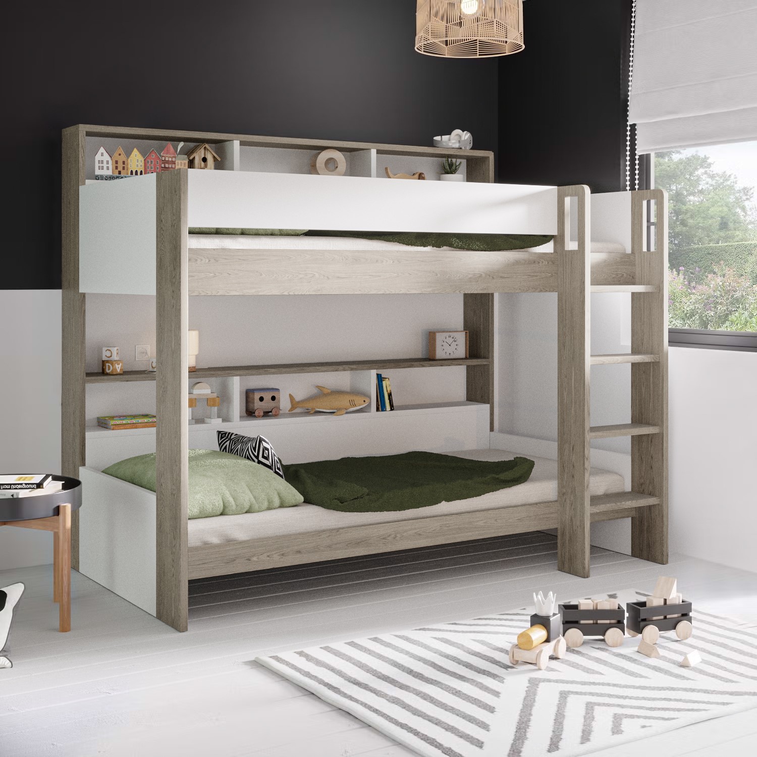 White and Oak Bunk Bed with Storage Shelves – Aire